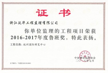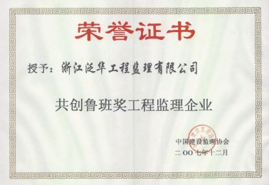 共創(chuàng)魯班獎(jiǎng)工程監(jiān)理企業(yè)榮譽(yù)證書(shū)
